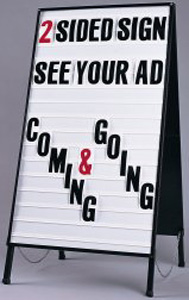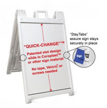 changing frequently. These rugged plastic collapsible A-frame signs